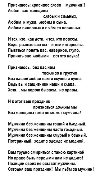 Мы в жизни полагаемся на вас, И этому есть веская причина, Вы доказать смогли уже не раз, Что значит настоящим быть мужчиной!