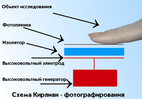 | Эффект Кирлиана Эффект Кирлиана, эффект Кирлиан, Кирлианова аура — плазменное свечение электроразряда на поверхности предметов, которые предварительно помещаются в переменное электрическое поле высокой частоты 10-100 кГц, при котором возникает поверхностное напряжение между электродом и исследуемым объектом от 5 до 30 кВ. http://www.youtube.com/watch?v=fnEGqOLACpY&feature=fvw Эффект, подобно статическому разряду или молниям, наблюдается на любых биологических объектах, а также на неорганических образцах разного характера. Открыт в 1939 году (запатентовано в 1949) краснодарским физиотерапевтом С. Д. Кирлианом (совместно с супругой В. Х. Кирлиан). http://www.youtube.com/watch?v=WDWlvDjiEso&NR=1